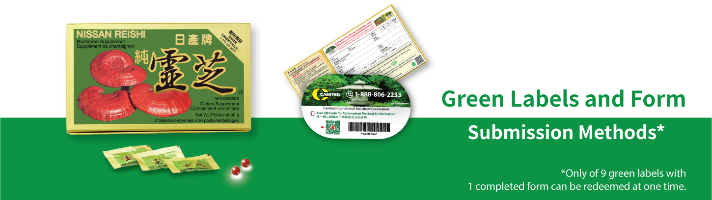Starting September, 2021, submit 9 green labels and 1 completed form to receive 50 sachets of Nissan Reishi for free (equivalent to 1 box ).